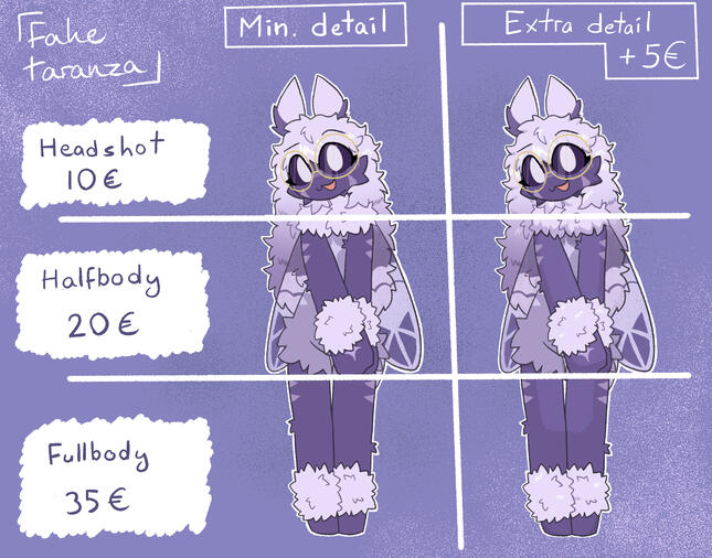Art commissionsIf you want to commission me, please talk to me on discord (@faketaranza) and I'll continue from there. The only form of payment I have at the moment is PayPal. This is the only way I can do commissions right now so I'm sorry if it doesn't work too well for you.I mainly draw character commissions, so I'm probably not the right artist if you're looking for something else.You can ask me to draw any kind of pose or gesture unless it crosses my boundaries as an artist (which I will tell you if so).